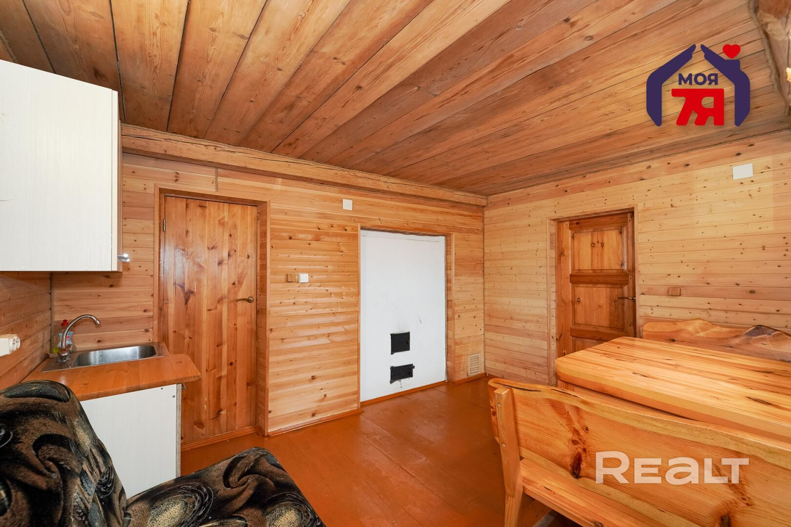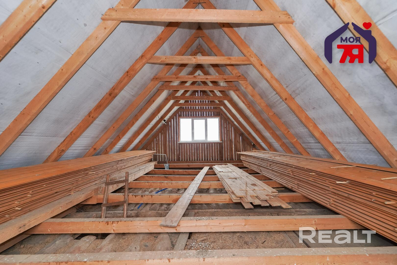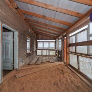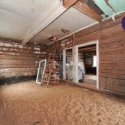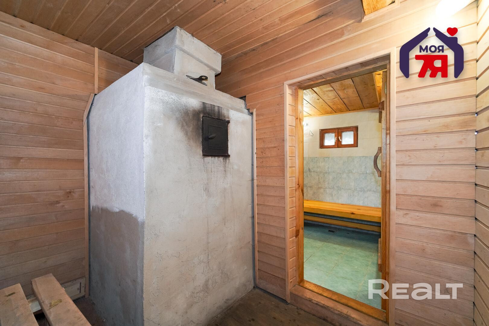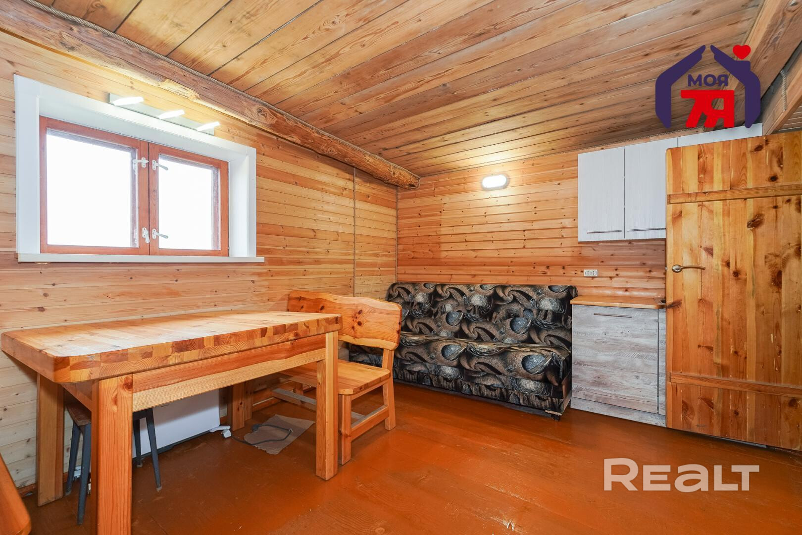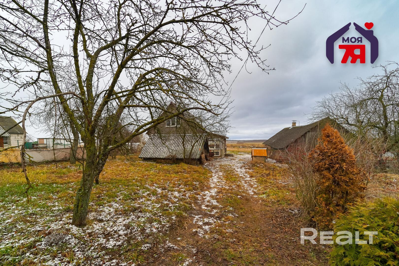 1. Бревенчатый дом площадью 54.3 кв.м. (8.6м * 6.3м). К нему подведены водопровод от собственной скважины (глубина - 50м), электричество, местная канализация с двумя переливными колодцами, оптоволокно для интернета от Белтелеком. Крыша полностью изменена, создан высокий чердак, который можно переоборудовать в жилую мансарду. К дому пристроена веранда площадью 25 кв.м. (8.6м * 2.9м). Установлены двухкамерные окна из ПВХ, общая кровля покрыта ондулином. После демонтажа старой внутрянки работы по облагораживанию дома не выполнялись, за исключением земляных работ, монтажа водопровода и канализации.
