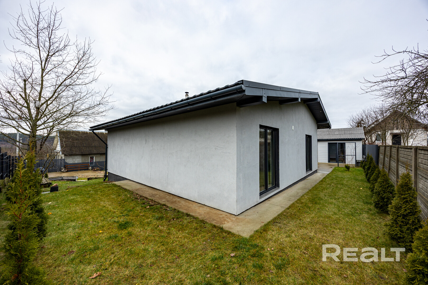 Загородный одноэтажный дом с тремя комнатами — это уютное и функциональное решение для комфортной жизни в природе. Общая площадь дома составляет 86.8-74.5 м2, терраса дома составляет 18,0, что идеально подходит для семьи из 4-5 человек. Возможность комфортного проживания всей семьи в безопасной, закрытой и экологически чистой зоне.