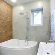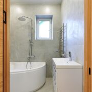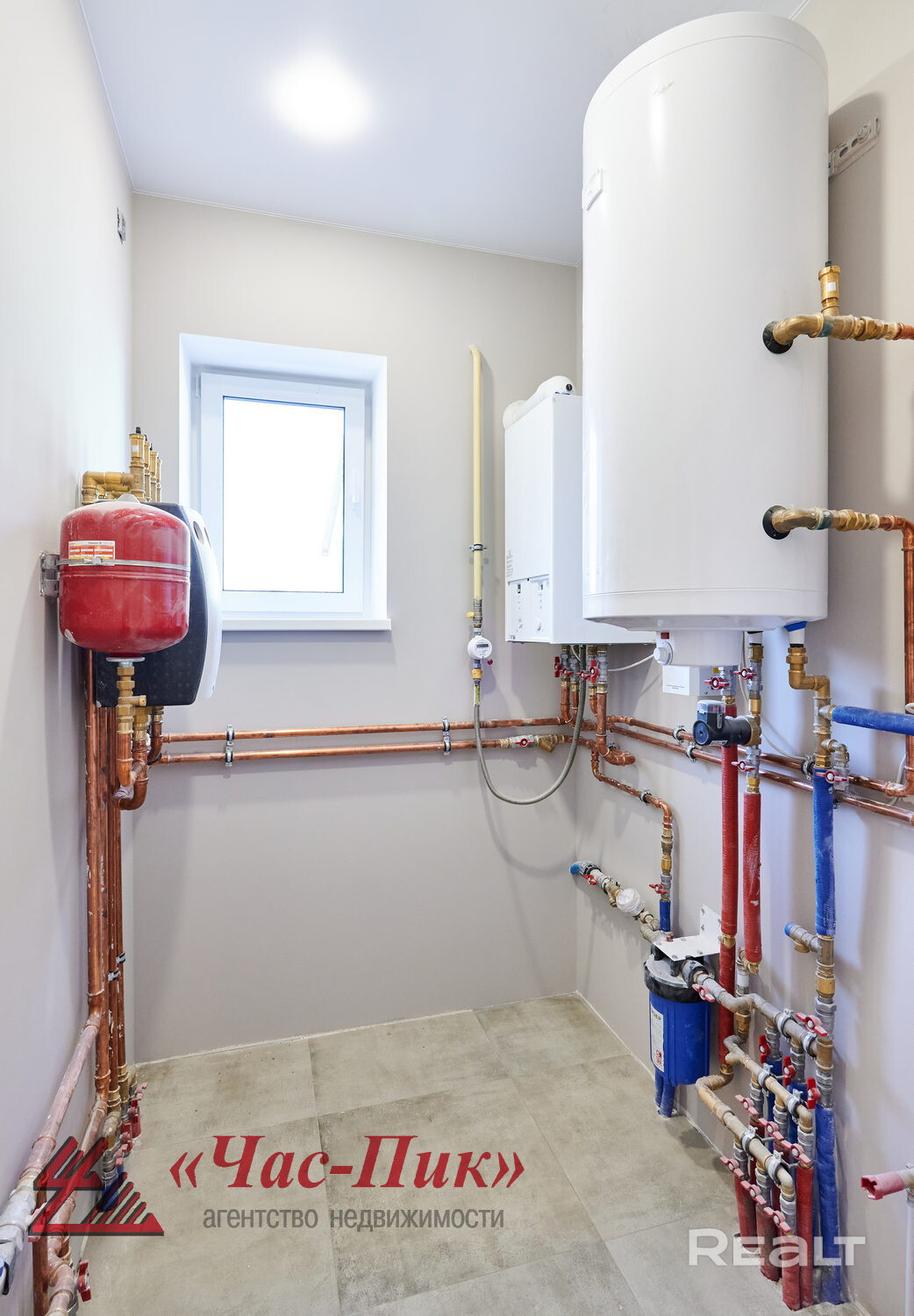 -Современная топочная с погодозависимой автоматикой, газовый котёл с бойлером, насосные группы, радиаторы, водяные тёплые полы;