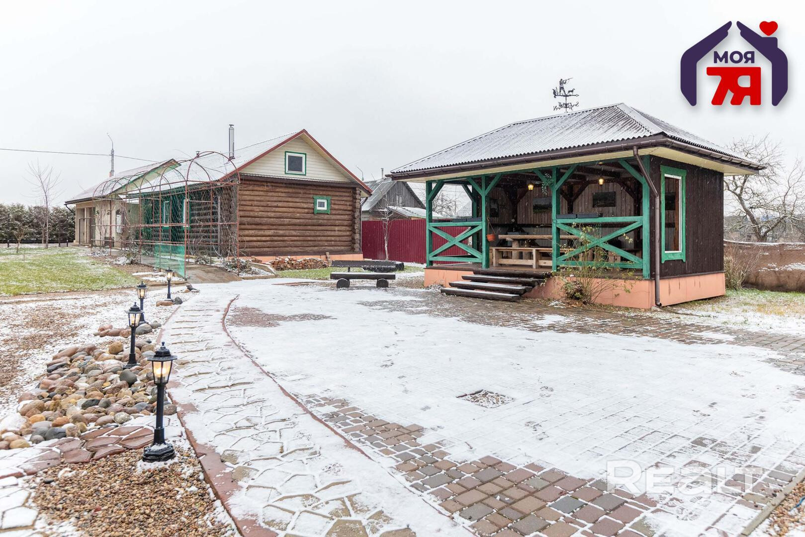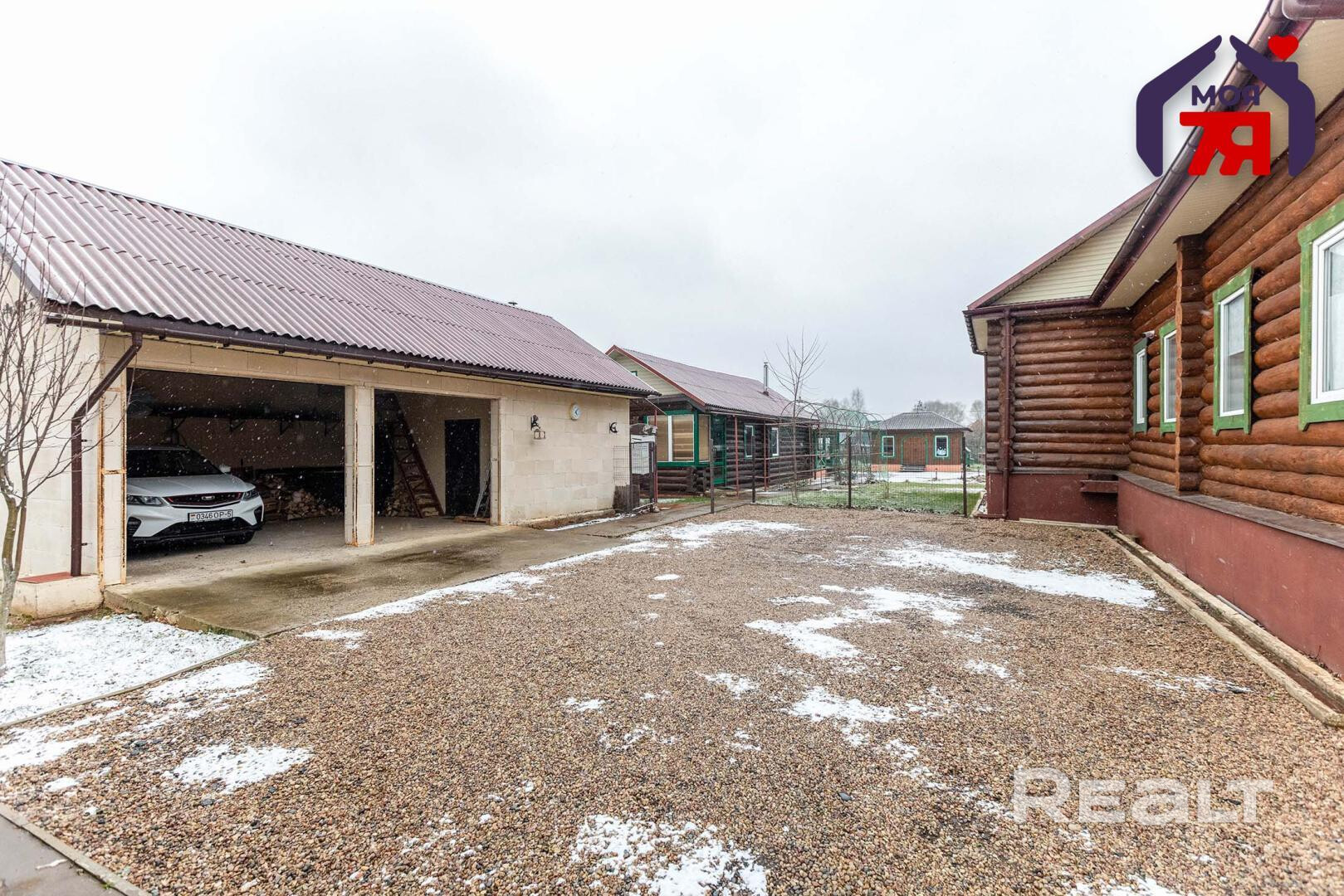 - Ландшафтный дизайн и мощёный заезд добавляют эстетики и удобства.