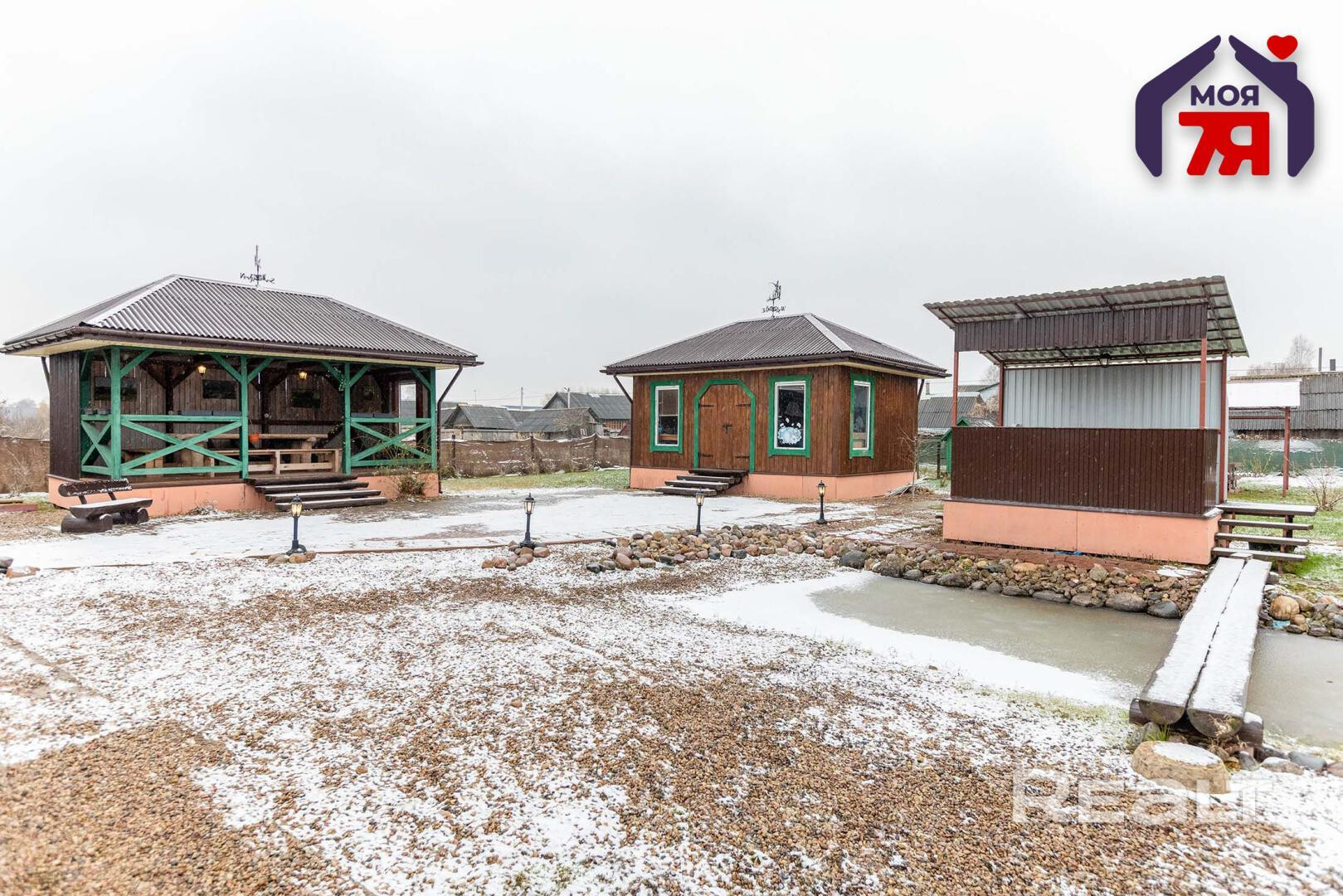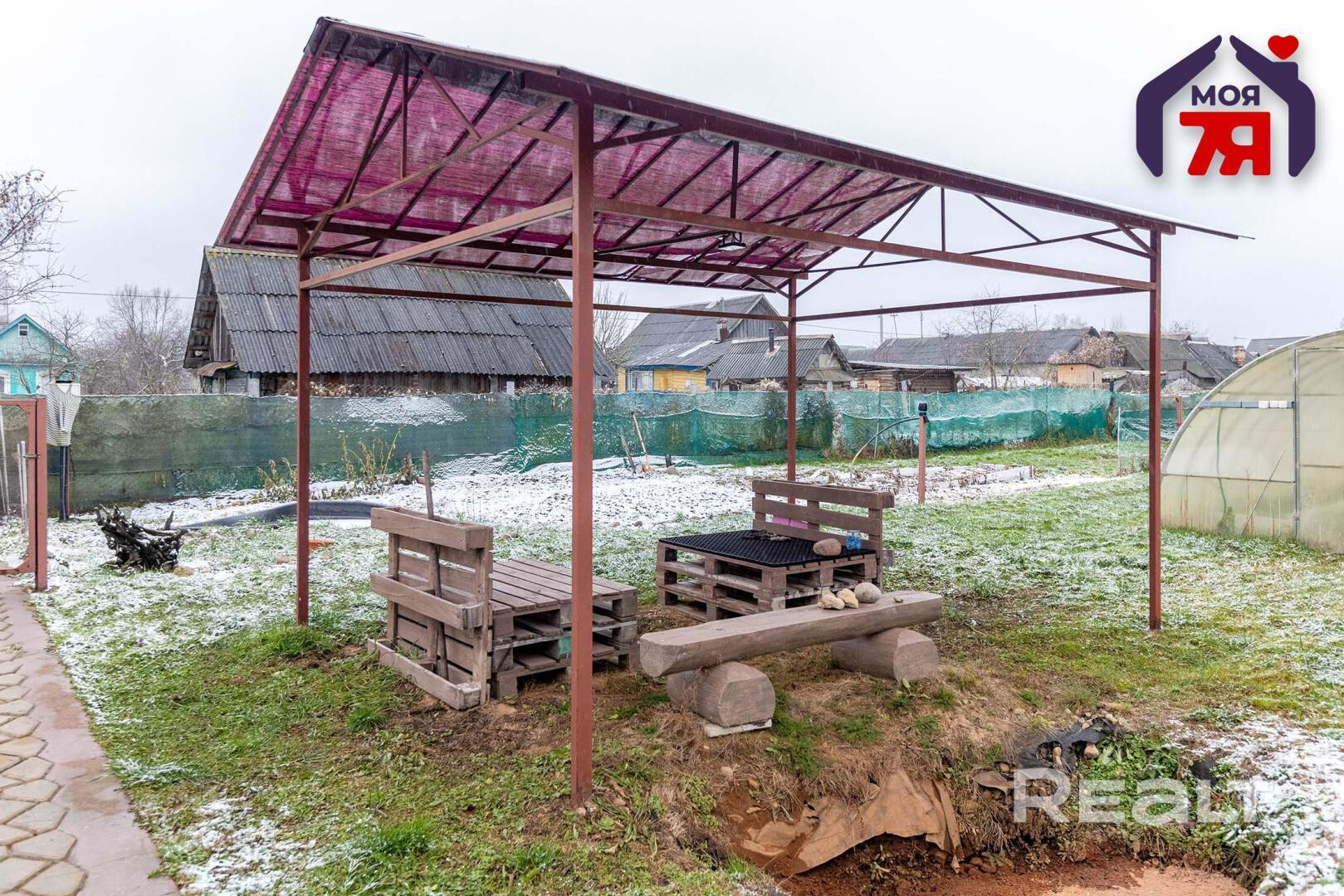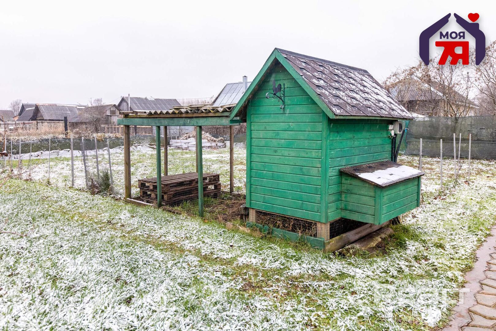 - Парник с электричеством, зона для грядок, курятник, дровница, мангальная зона.