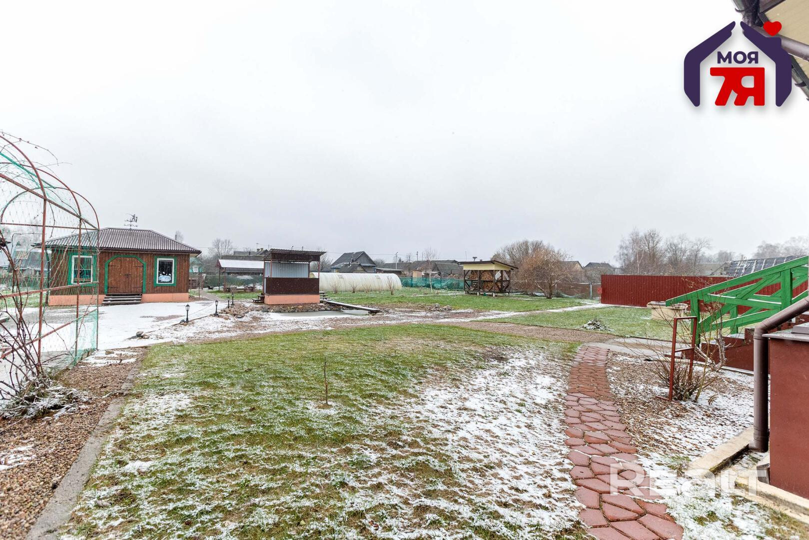 - Хозяйственные постройки: капитальный гараж на два автомобиля, гостевой домик, баня, сарай, беседка и зона  для сушки белья.