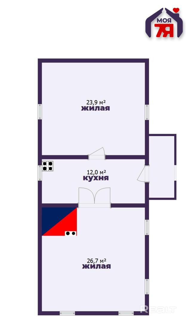 -Часть дома отапливаемая (печь), вторая часть – летняя, идеально подходит для теплого времени года.