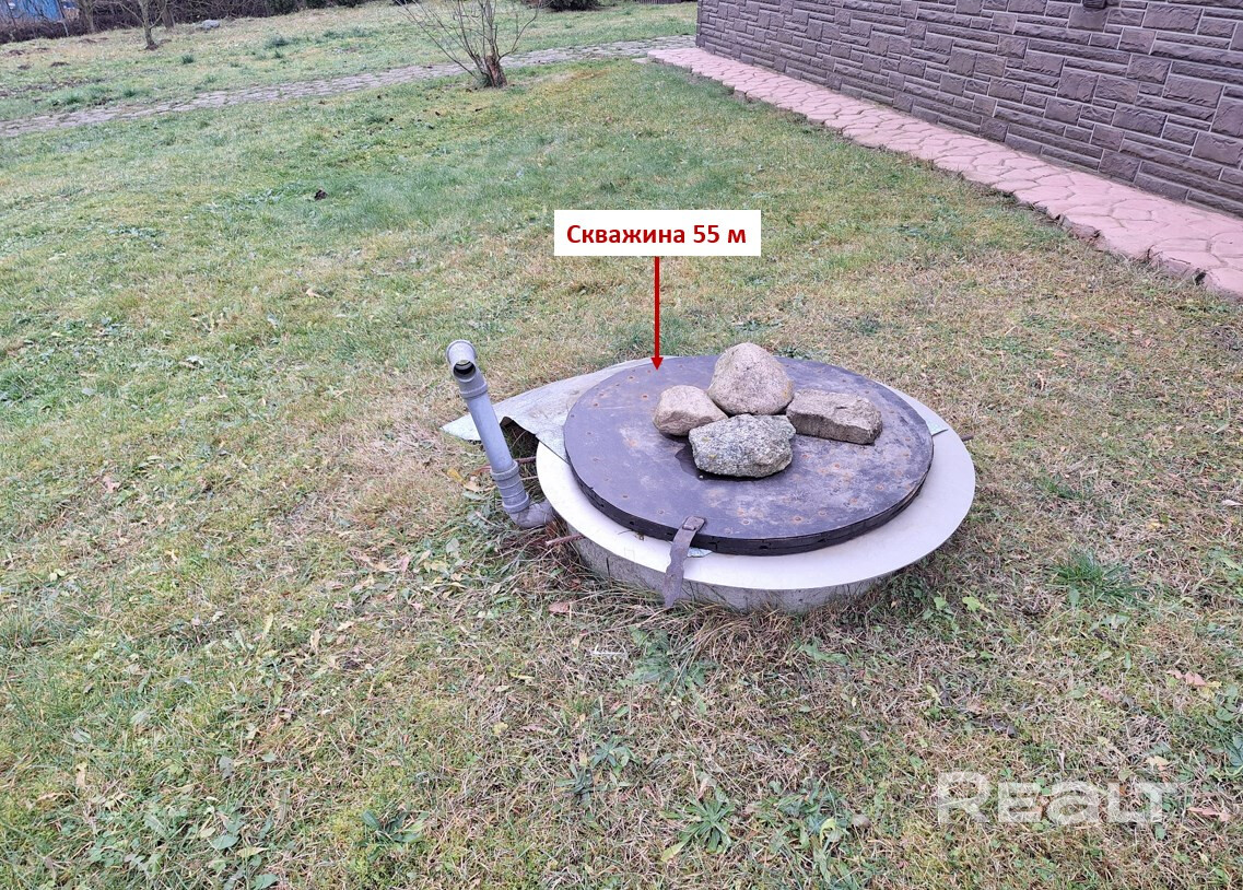 Артезианская скважина (глубина 55 м) с чистой водой - на участке. Вода заведена в дом, подогревается бойлером. Канализация местная - хорошая.