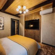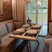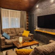 • Гостевой дом 87,5 кв.м. (утепленный полубрус, утепленная монолитная плита): 1 спальня, каминный зал, большой совмещенный санузел, обеденная зона, подсобное помещение, веранда с мебелью.