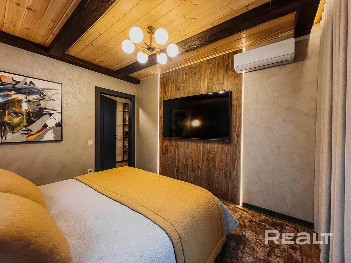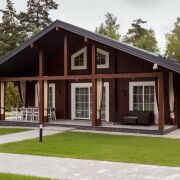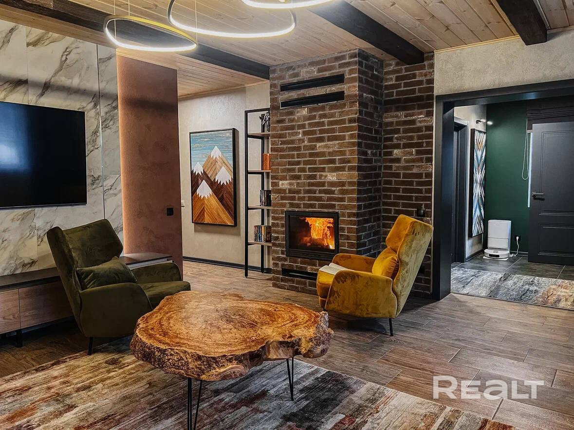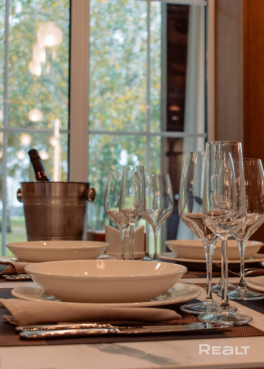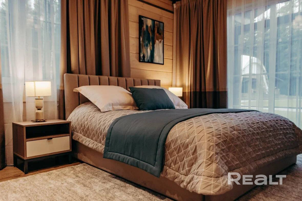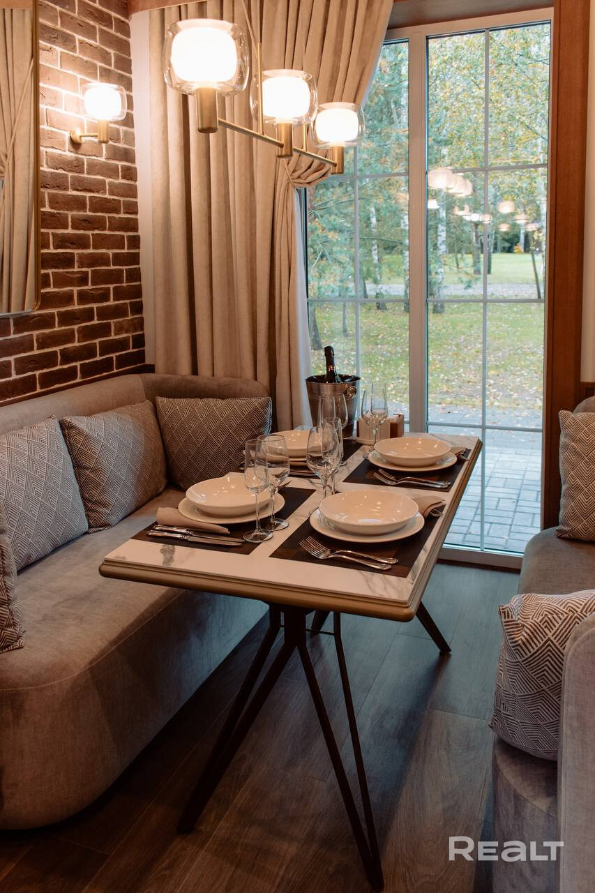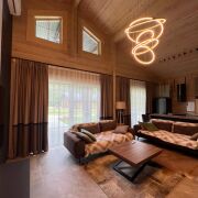 • Основной дом 149 кв.м. (клееный брус 200*260, утепленная монолитная плита): 3 спальни, 2 санузла, каминный зал с обеденной зоной, подсобные помещения, веранда с мебелью.