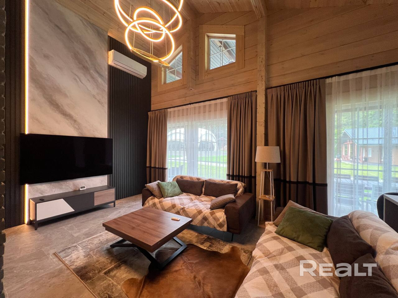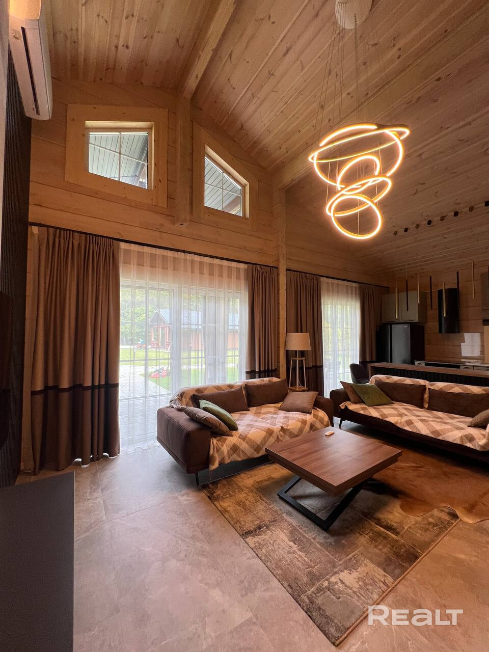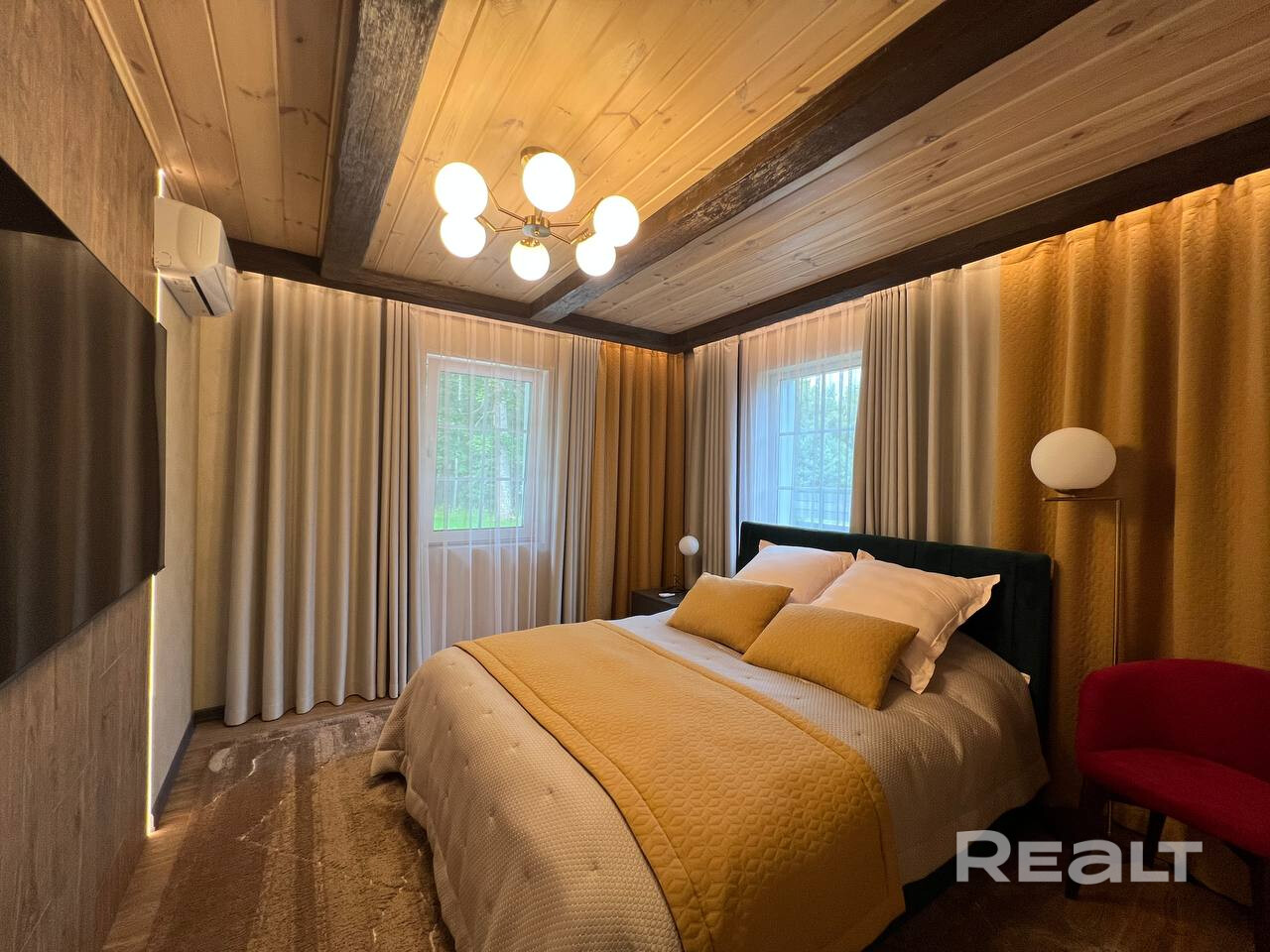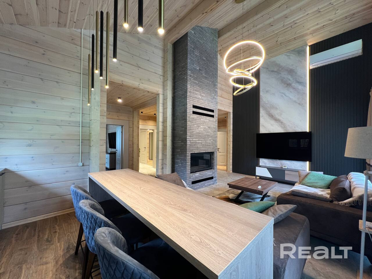 • Основной дом 149 кв.м. (клееный брус 200*260, утепленная монолитная плита): 3 спальни, 2 санузла, каминный зал с обеденной зоной, подсобные помещения, веранда с мебелью.