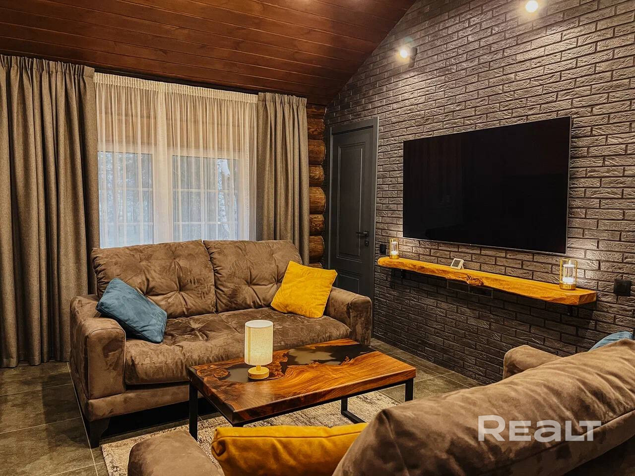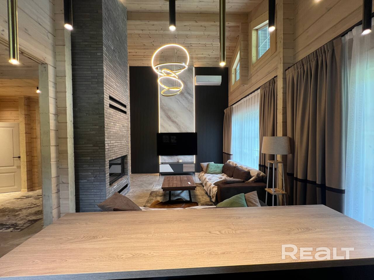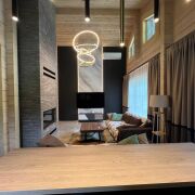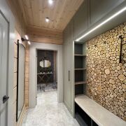 Все внутренние отделочные работы, мебель и бытовая техника были выполнены по индивидуальным дизайнерским проектам архитектурно-дизайнерской студии Юка. Также осуществлен авторский и технический надзор за выполнением работ.