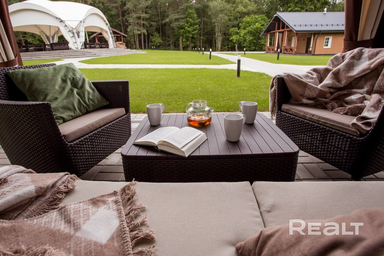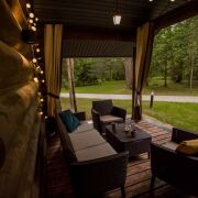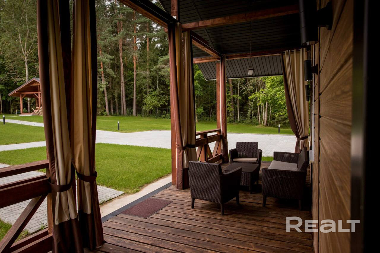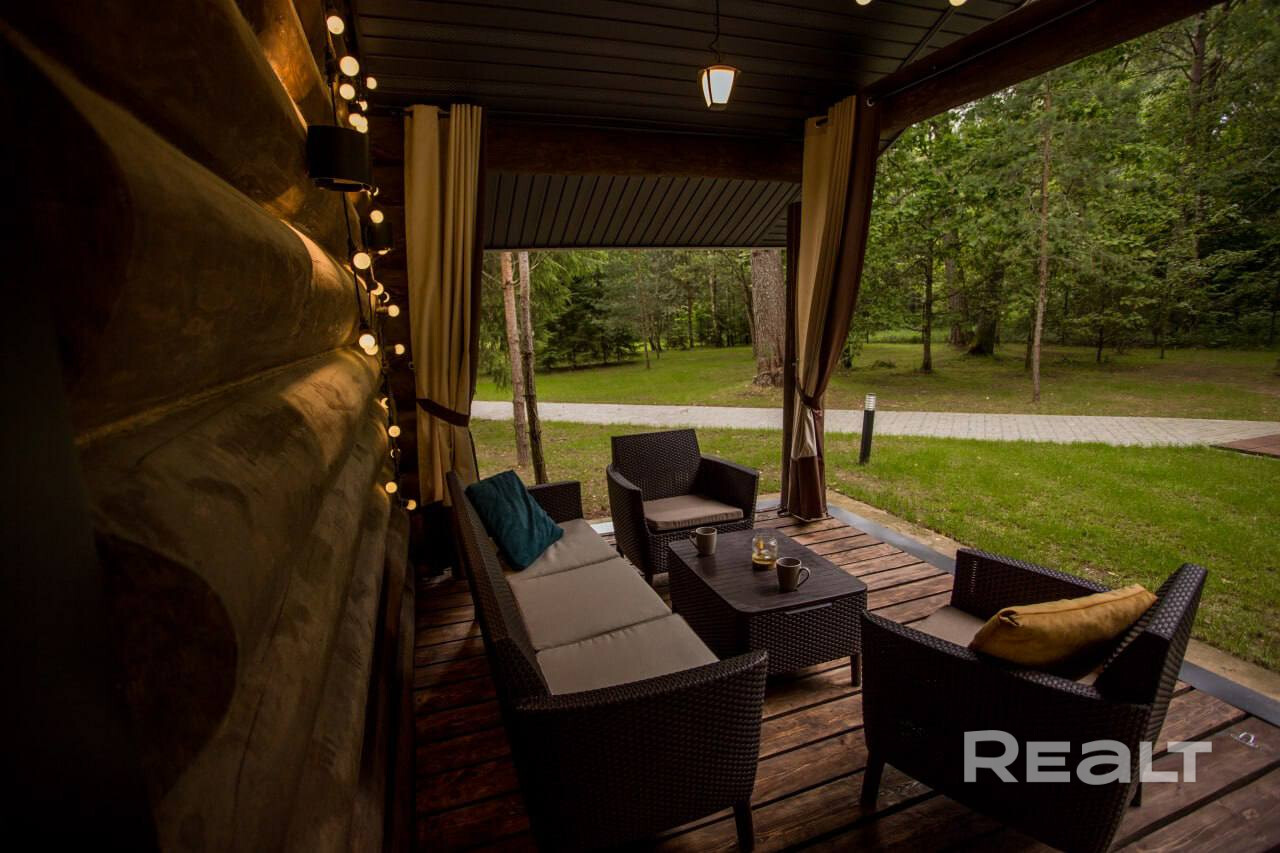 • Баня (бревно ручной рубки 350+, утепленная монолитная плита): комната отдыха, парная на дровах, 2 душевые кабины, санузел, раздевалка, веранда с мебелью, купель на дровах.