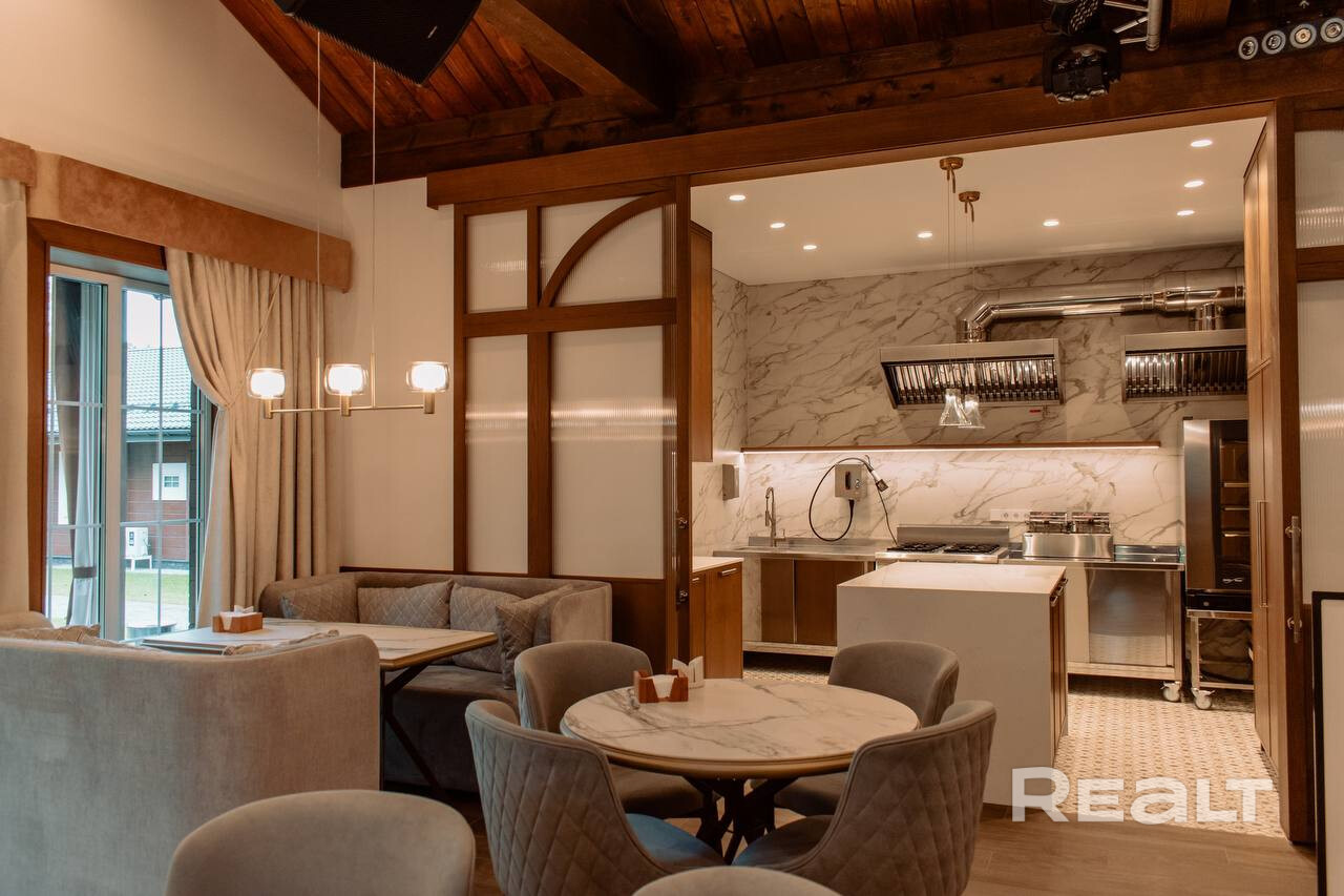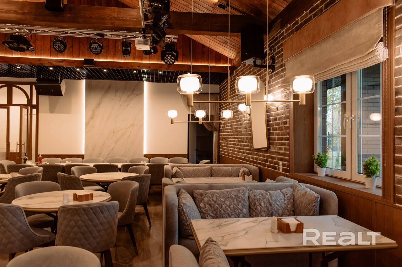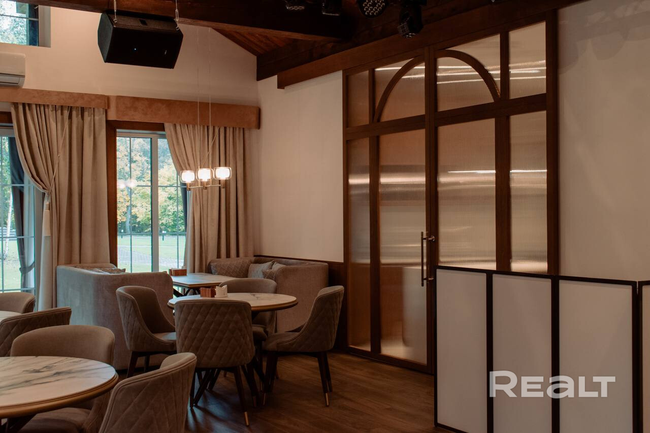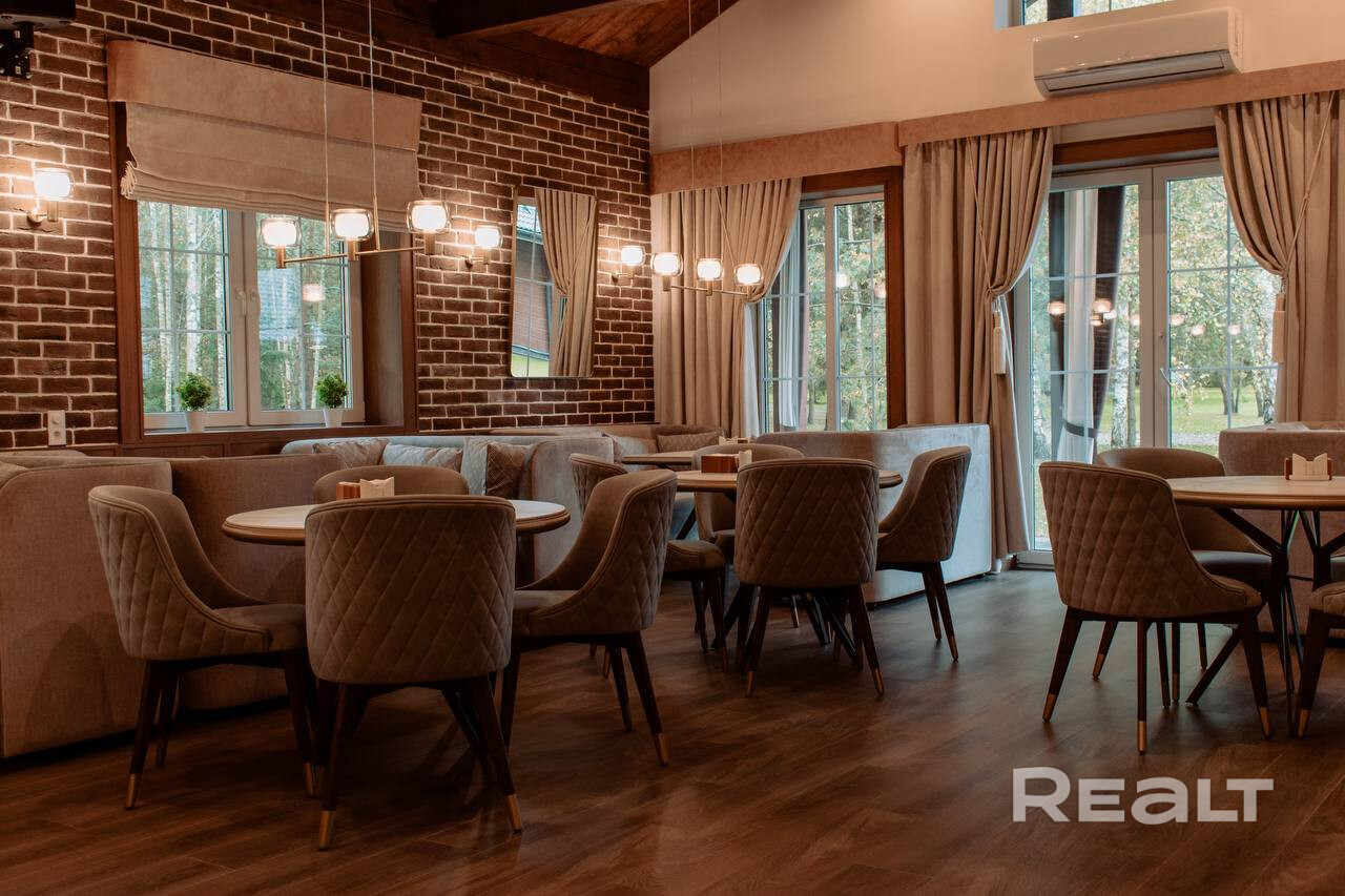 • Ресторан (блок 400 мм, утепление 100 мм, клинкерный кирпич с утеплением 50 мм, утепленная монолитная плита): банкетный зал на 60 посадочных мест, кухня, сервировочная, 3 санузла, постирочная, комната персонала, гардероб, гараж.