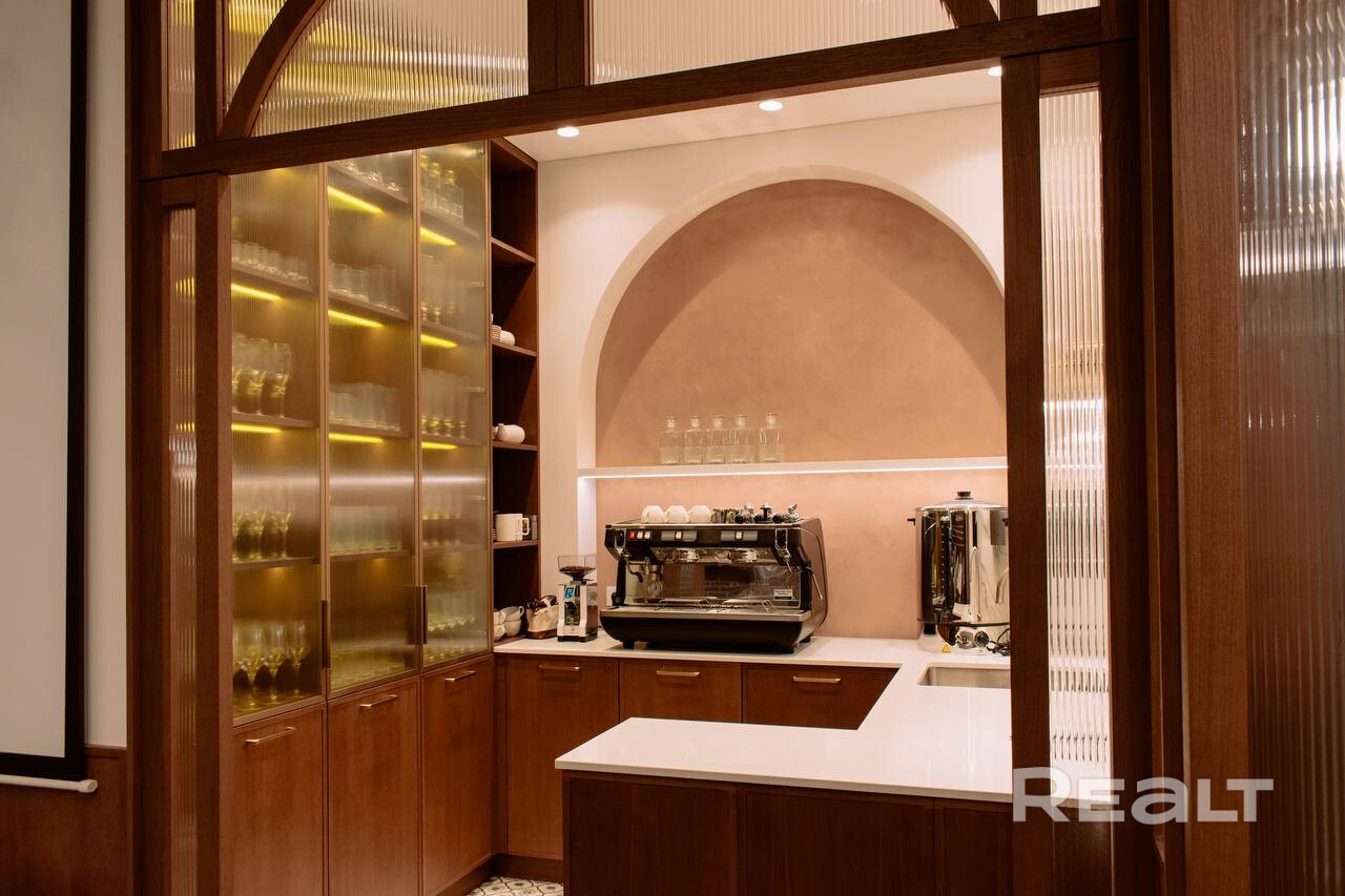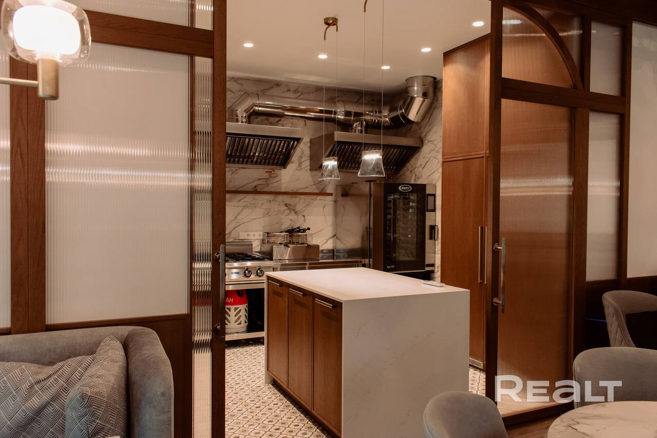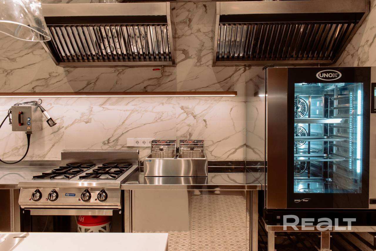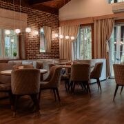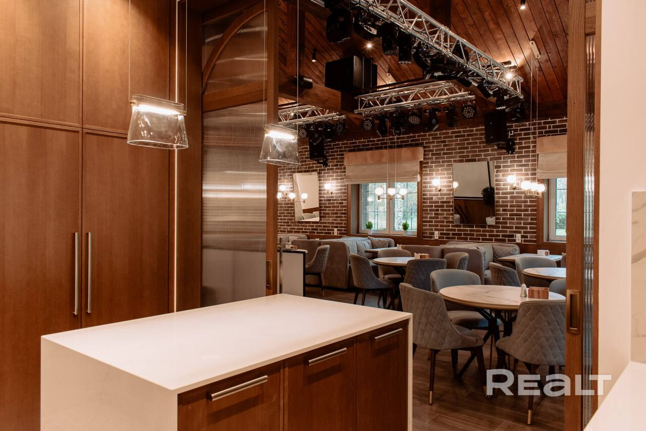 • Ресторан (блок 400 мм, утепление 100 мм, клинкерный кирпич с утеплением 50 мм, утепленная монолитная плита): банкетный зал на 60 посадочных мест, кухня, сервировочная, 3 санузла, постирочная, комната персонала, гардероб, гараж.