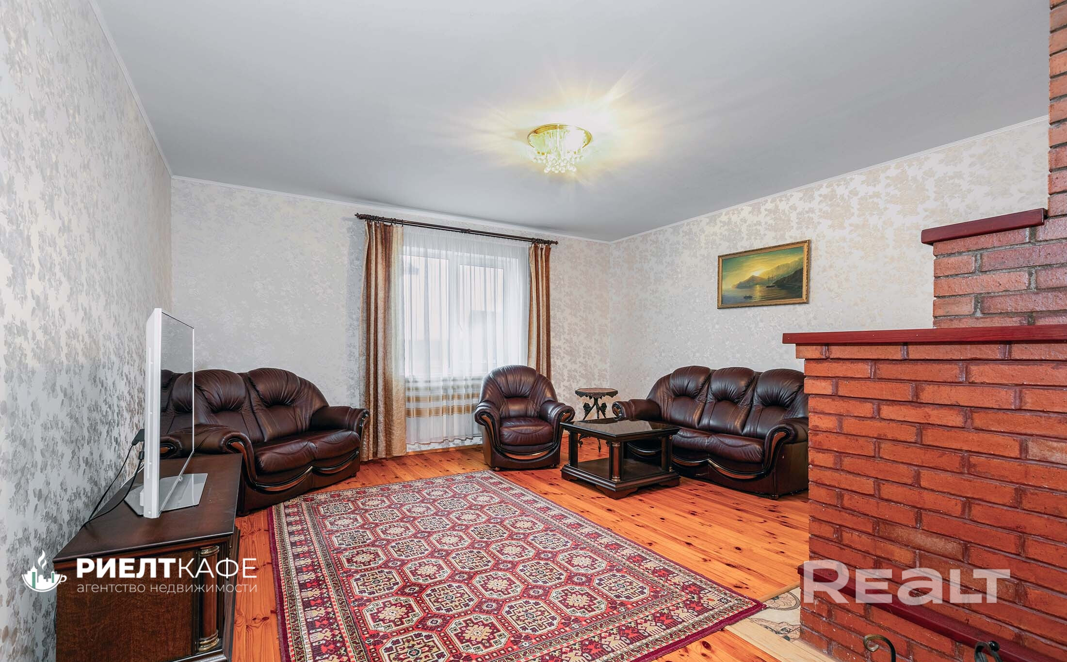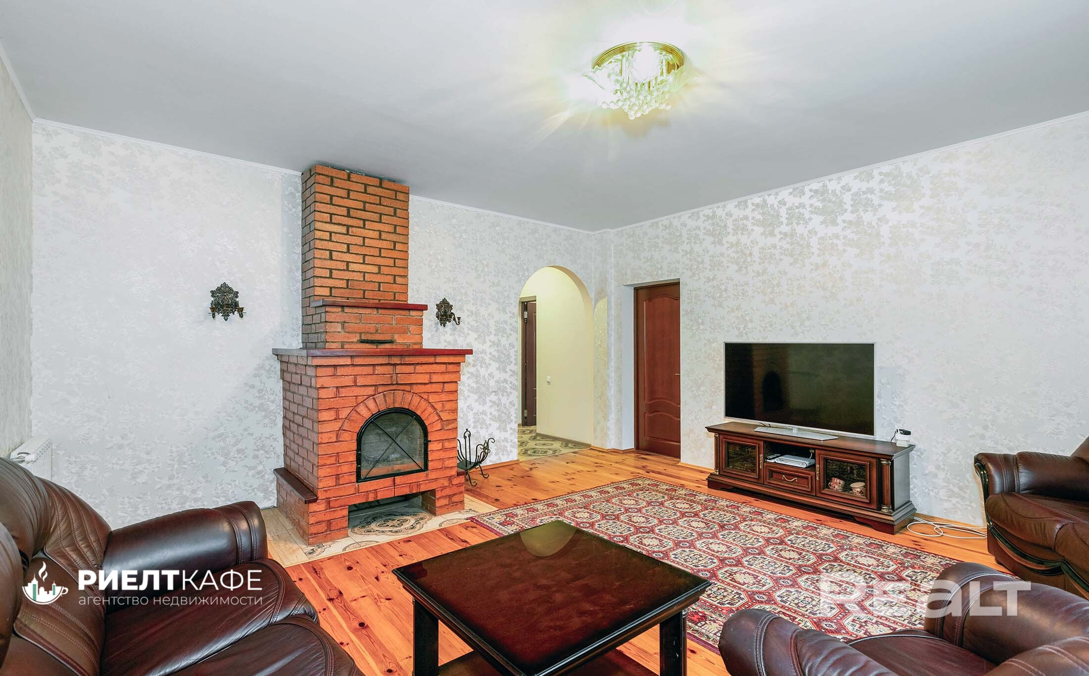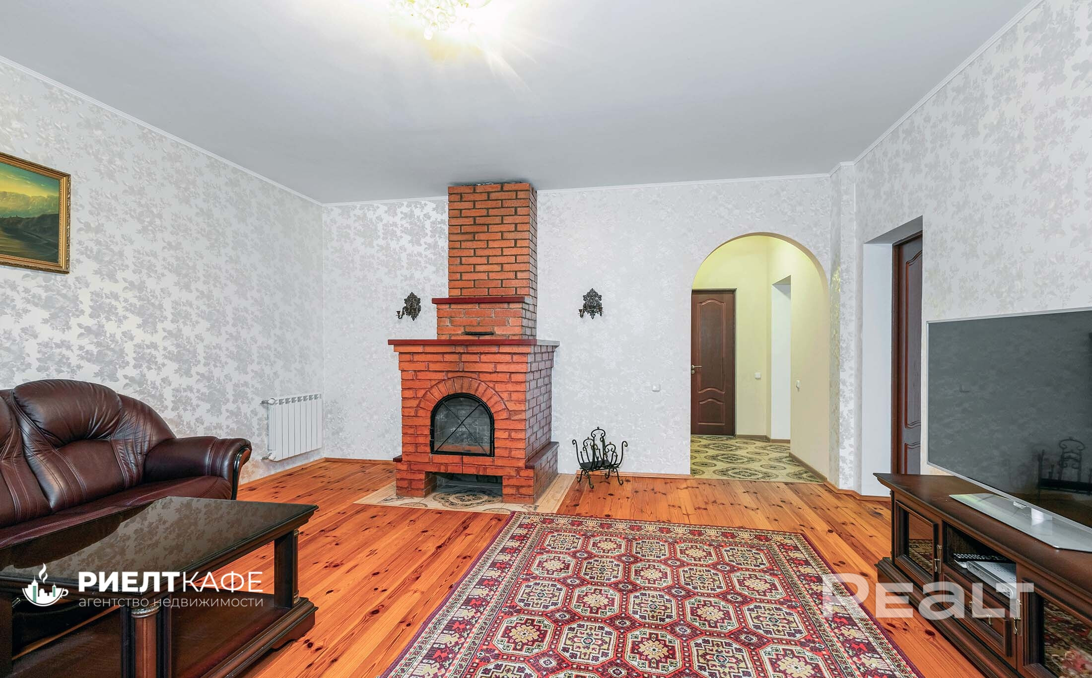 - просторная гостиная 26 м2 с настоящим камином — место для вечерней медитации у огня и задушевных разговоров