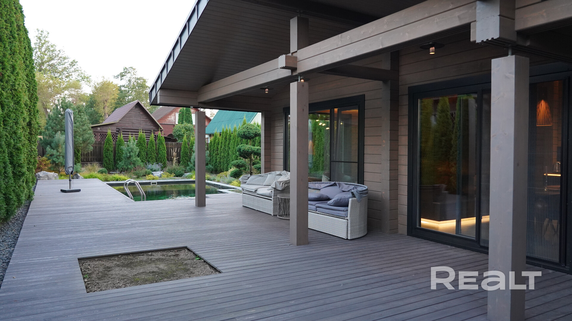 Дом изготовлен из клеенного бруса производства «СегежаГруп» один из крупнейших российскихлесопромышленных холдингов с полным циклом леса заготовки и глубокой переработки древесины, фальцевая кровля с подогревом скатов из более 15000 элементов сделанных вручную мастерами Falzmaster,встроенная водосточная система также с подогревом,бассейн с подогревом/охлаждением готов к использованию 365 дней ,детская зона в котором высыпана мелким песочком,основная часть дна выложено крупной галькой,большая терраса из лиственницы высшего сорта,авторская парная сделана из высококачественных материалов и оснащена также аудио системой! В доме все готово к проживанию,плитка итальянская,французский состаренный паркет,кондиционер,сантехника hansgrohe и grohe,стиральная машина Bosch, сушильная машина Bosch,посудомоечная машина Bosch, индукционная плита со встроенной вытяжкой Elica,духовой шкаф и встраиваемая микроволновая печь Bosch,холодильник Liebherr, вся мягкая мебель Sofa club,вся электрика центрсвет,розетки и выключатели jung, стильный камин полностью выполнен из латуни вручную,дизайнерские межкомнатные двери,окна деревянные wooder,вся мебель авторская Firs,стол в гостиной из массива ясеня,вся остальная мебель выполнена из массива 200 летного амбарного дуба,установлена дорогая приточно-вытяжная система,внутри и снаружи дом ошлифован и окрашен лучшими лакокрасочными материалами( remmers,Adler,impra) Центральное газоснабжение,скважина 97м,авторский ландшафтный дизайн!