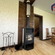 -В доме два просторных санузла, облицованных плиткой в нейтральной палитре - практично, стильно и долговечно. Установлена сантехника высокого класса, есть камин из нержавеющей стали, который служит не только элементом уюта, но и дополнительным источником тепла.