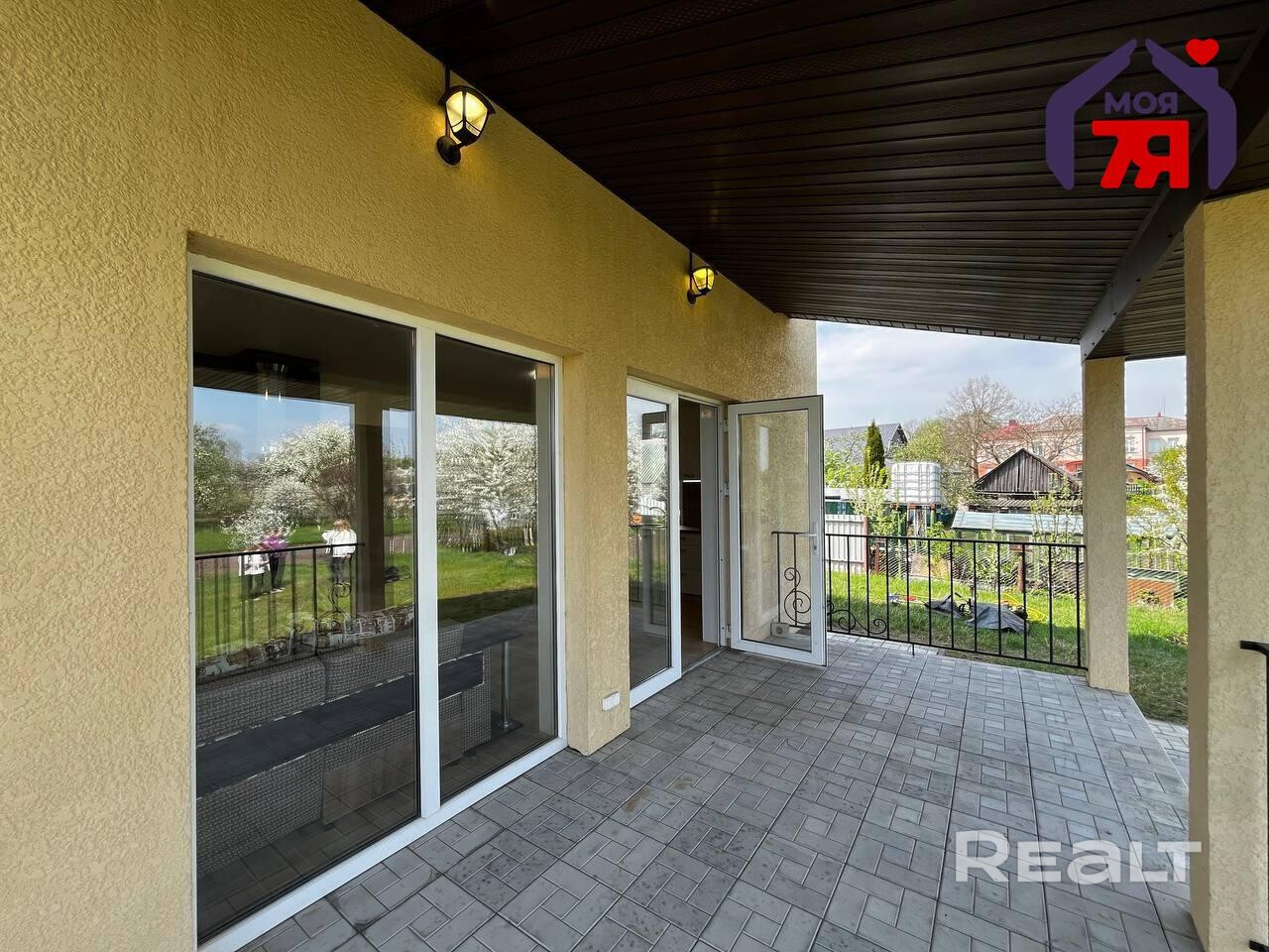 -Особое внимание стоит уделить участку, площадью 13,3 сотки, ровный, ухоженный. Мощеные дорожки придают участку ухоженный вид, а большая терраса станет отличным местом для летних посиделок.
