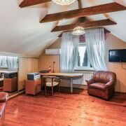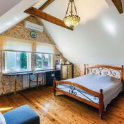 Внутри выполнен современный ремонт. Интерьер дома  в классическом стиле, полы-дерево, благородные балки на потолке, эксклюзивная мебель, а также камин в гостиной для уютных вечеров.