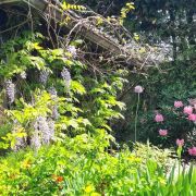 Продуманный ландшафтный дизайн, фруктовые деревья, разнообразие цветов на участке, радует глаз в любое время года.