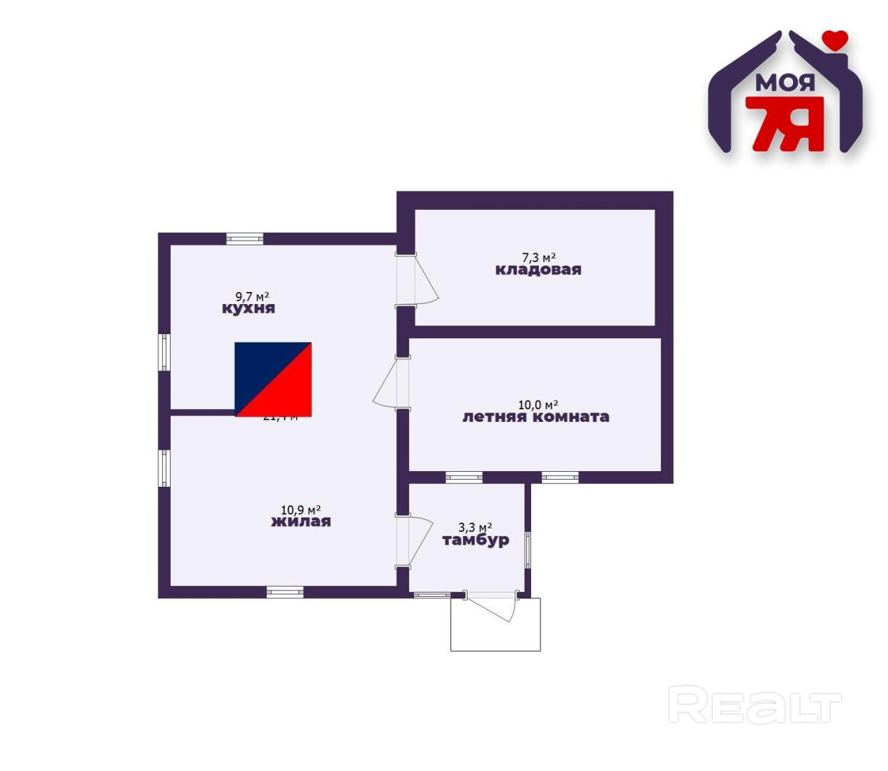 -Внутри три жилые комнаты - это позволяет разделить пространство на спальню, гостиную и отдельную комнату под кабинет, детскую или гостевую.