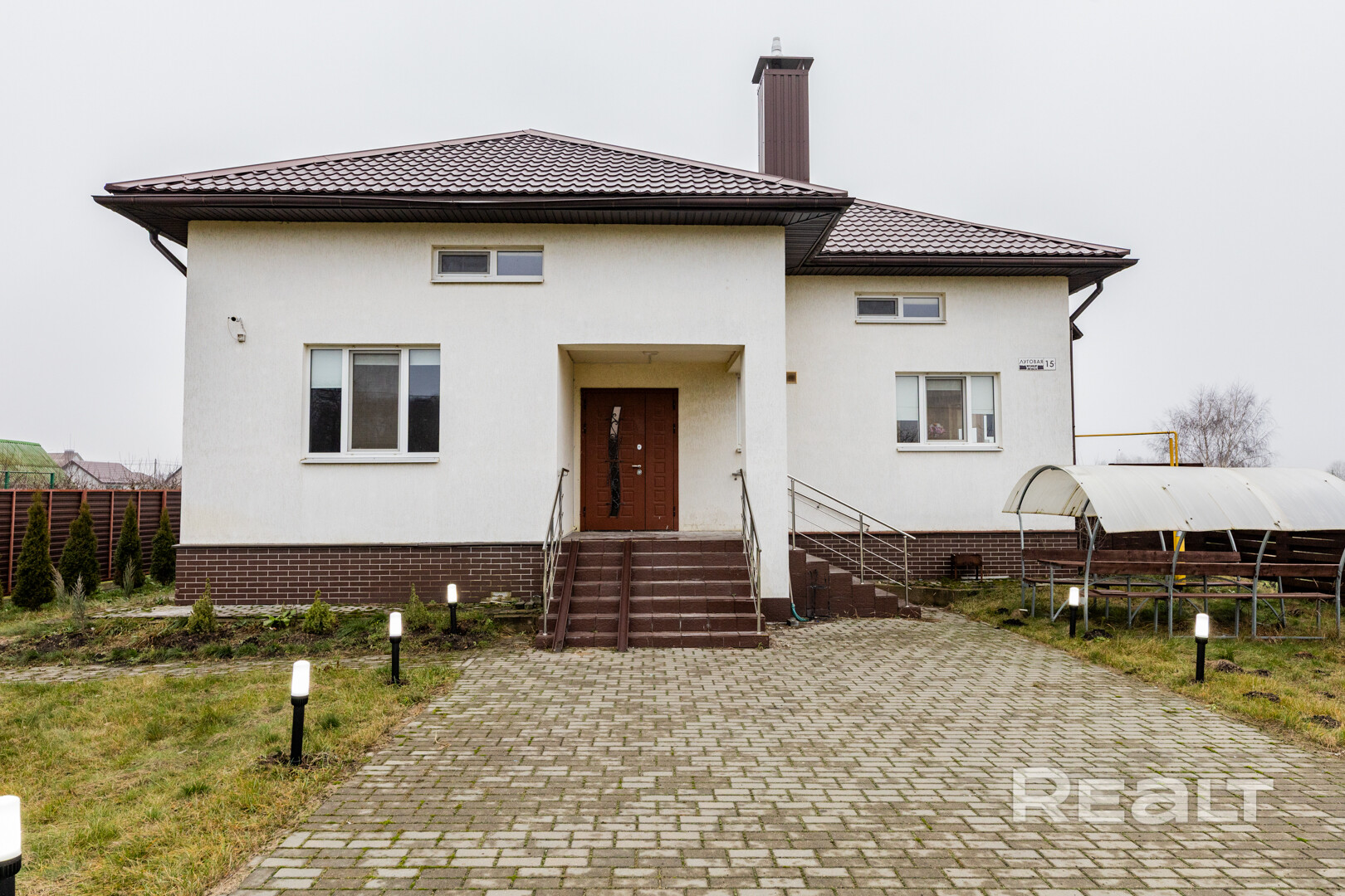 Входную зону с подсветкой, с возможностью стоянки нескольких авто
