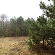 Край участка уходит в молодой сосновый лесок, за участком (70 метров) протекает река Волма.