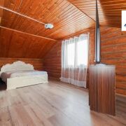 На первом этаже расположена просторная веранда, кухня-гостиная и большой санузел в плитке. Есть ванная. Потолок в санузле натяжной. Установлен бойлер на 80 литров. На мансарде две уютные спальни с панорамными окнами.