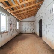 Второй блочный дом (готовность 65%) впечатляет своими параметрами. Два полноценных этажа и 190м2 общей площади позволят реализовать любые планировочные решения. На первом этаже – 4 больших помещения: вестибюль, холл с лестницей и 2 изолированные комнаты. На втором этаже – общее не зонированное пространство.