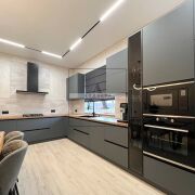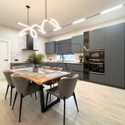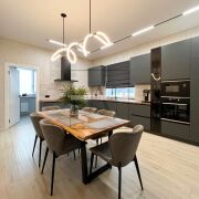 1-й этаж - гостиная, гостевая комната и просторная кухня (оборудована всей необходимой бытовой техникой), санузел, гараж, терраса, котельная;
