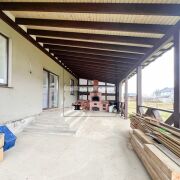 Дом построен из ГСБ - 400 мм, утепление - 50 мм. Фундамент - ФБС блоки, на террасе - монолитная плита. Крыша - металлочерепица, утеплена каменной ватой 200 мм, есть гидроизоляция.