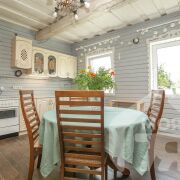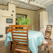 -На первом этаже находится просторная кухня-столовая, площадью 18 кв.м. с великолепной новой белой печью-камином, где каждый вечер будет наполняться теплом и уютом. Яркое солнце будет освещать эту часть дома во второй половине дня, создавая атмосферу уюта и покоя. Гостиная с теплой лежанкой идеально подходит для тихих ужинов или созерцания огня у камина.