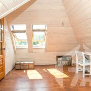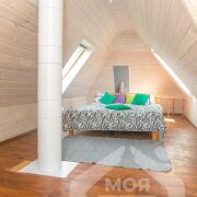 -Спальная комната на мансардном этаже площадью 27 кв.м. - это чистое и светлое пространство для отдыха. Мансардные окна «Велюкс» создают солнечную атмосферу и открывают потрясающий вид на ночное небо.