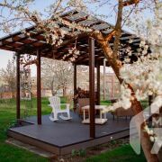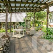 -Красивая просторная и лаконичная терраса на 20 кв.м.- изюминка дома, где можно устроить банкет для 20-ти гостей или просто наслаждаться природой, сидя с бокалом вина в кресле. С неё открывается захватывающий вид на Девичью гору и руины храма, построенного в 18 веке. Здесь вы будете устраивать завтраки, обеды и вечера, которые не забудутся.