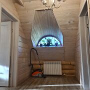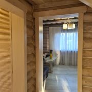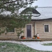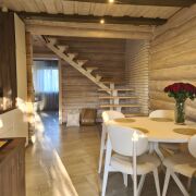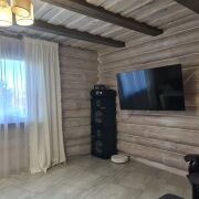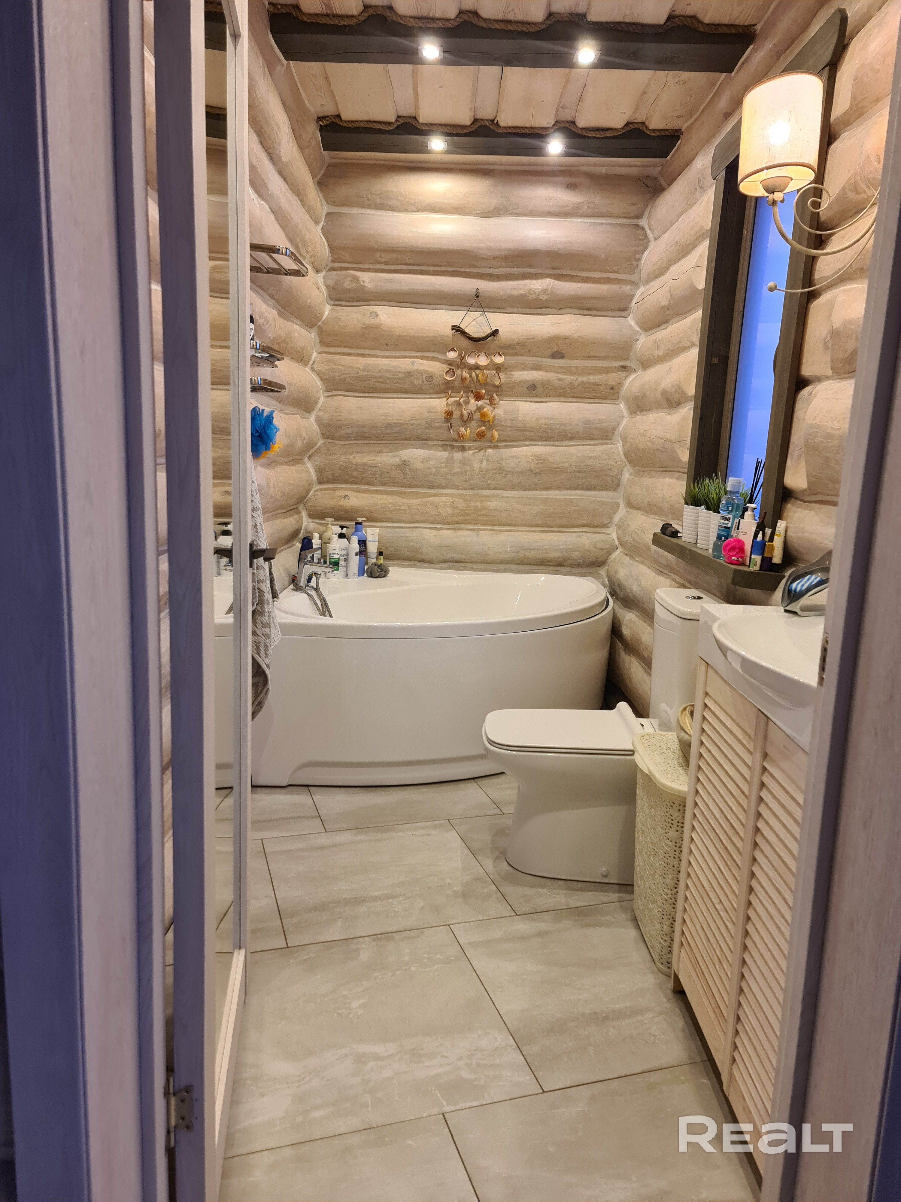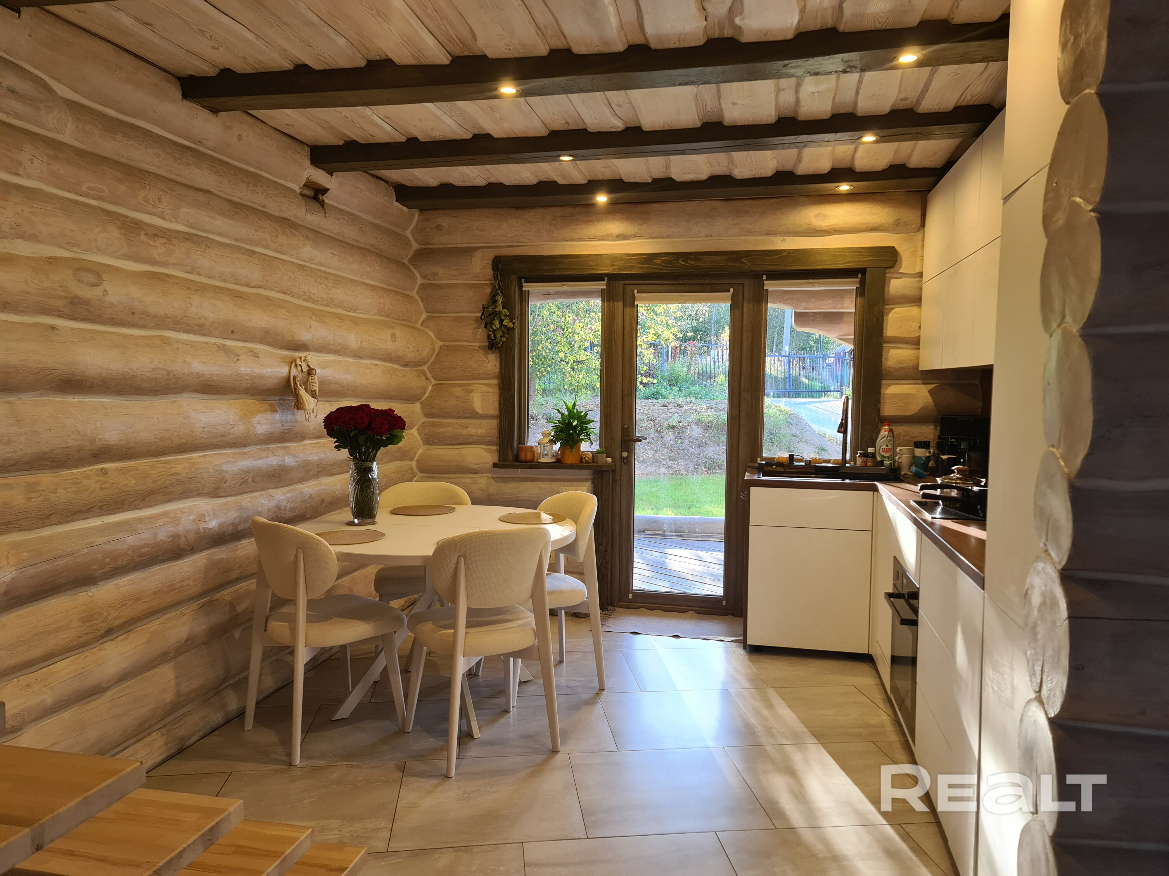 Всего в 10 километрах от Минска продается оригинальный дом из бруса с тростниковой крышей. Это современное загородное жилье — коттедж построен в 2025 году. При строении дома позаботились об экологичности, использовали только натуральные материалы. Стены - деревянные, ручной рубки, лес использовали, зимний белорусский. Сруб не продувается — швы между венцами за герметизированы герметиком. Фасад обработан в несколько слоев комплексным защитным раствором. Крыша покрыта тростником.