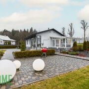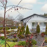 Красивый ландшафтный дизайн, на участке хозблок. Огорожен.