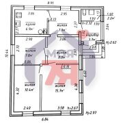 - Общая площадь дома составляет 61,7 кв.м., из которых 48,9 кв.м. отведено под жилые комнаты, а кухня - 6,9 кв.м.