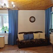 В доме 6 раздельных комнат: стеклопакеты, пол ламинат, кафель в с/у, отопление - газ, также установлен твёрдотопливный котёл, центральное водоснабжение, канализация местная.
