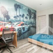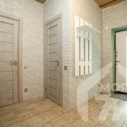 -Прихожая и коридор оформлены в едином стиле с использованием светлых тонов и стильных элементов декора, что подчёркивает продуманность дизайна и создаёт гармоничное первое впечатление при входе. В прихожей предусмотрены удобные системы хранения, что помогает поддерживать порядок и уют.