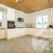 - Просторная кухня с элегантным встроенным гарнитуром белоснежного оттенка создаёт атмосферу легкости и чистоты. Пол выполнен из качественного керамогранита с имитацией дерева - это сочетание практичности и уюта, обеспечивающее долговечность и простоту в уходе.