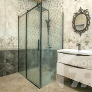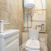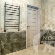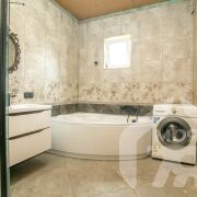 -Ванная комната оформлена в нейтральных тонах с изысканными декоративными элементами, что придаёт ей изысканный и стильный вид. Установлена современная сантехника, включая угловую ванну и встроенную систему хранения, что гарантирует удобство и функциональность. Благодаря наличию окна в ванной, помещение наполнено естественным светом.