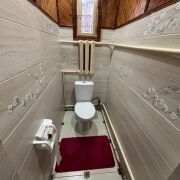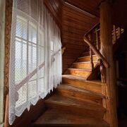 На первом этаже расположены: просторная светлая гостиная с шикарным паркетным полом из дуба и выходом на кухню-столовую, комната для отдыха, санузел и подсобные помещения.