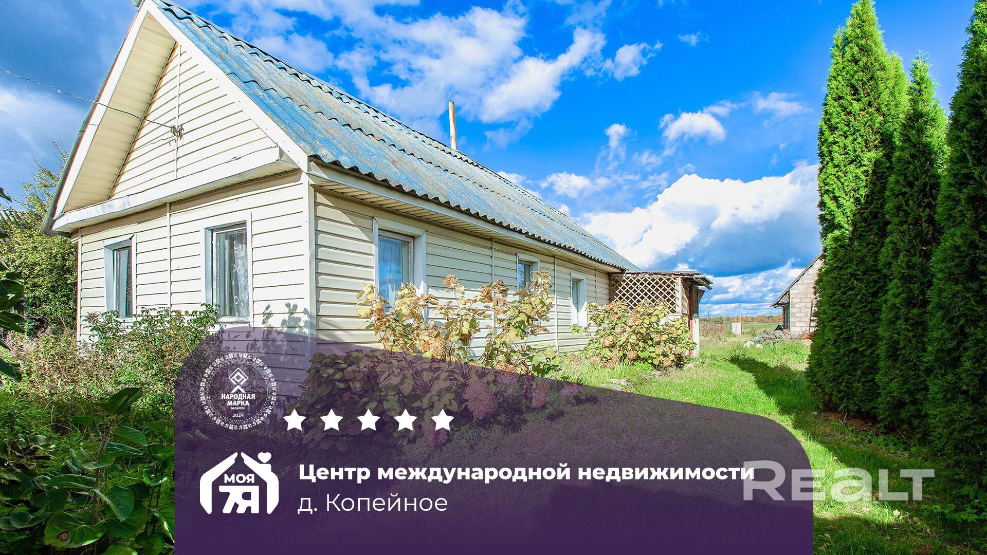 - Одноуровневый бревенчатый жилой дом 1940 года постройки. Фасад дома обшит сайдингом.