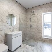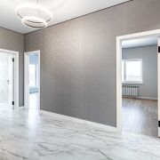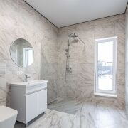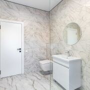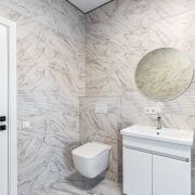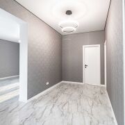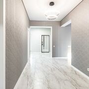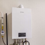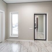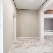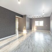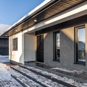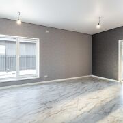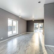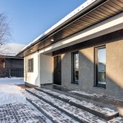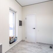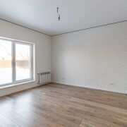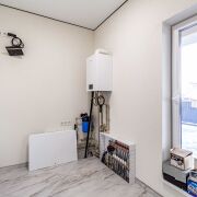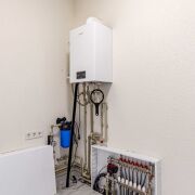 Водяные тёплые полы везде, где плитка: кухне-гостиной, санузле, топочной, коридоре. Жилые комнаты ламинат и радиаторы отопления.