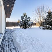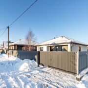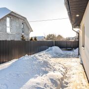 Участок угловой 6,09 сотки правильной формы. Полностью огорожен металопрофилем. Растут берёза, ель и сосна. Тротуарной плиткой вымощены парковочные места.