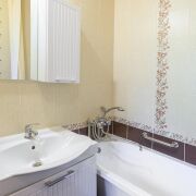 - Разделённый санузел с ванной, облицован плиткой.