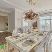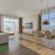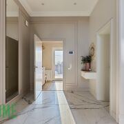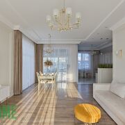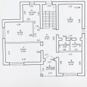 Общая площадь здания – 258.4 кв.м., общая площадь жилых помещений дома – 224.3 кв.м, жилая площадь – 148.1 кв.м., высота потолков – 3.28 м (первый уровень и 2.86 (второй).