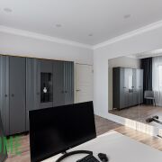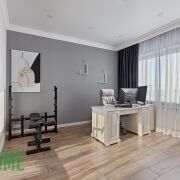 На втором этаже - две светлые просторные спальни (одна из которых мастер спальня с собственным санузлом и гардеробной), рабочий кабинет, детская, санузел, балкон.