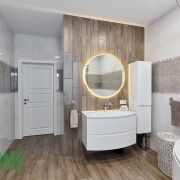 На первом этаже расположена просторная кухня-гостиная с выходом на застекленную террасу, спальня/кабинет, гостевой санузел, просторный холл, гардеробная, топочная.
