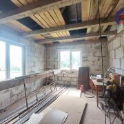 - Двухуровневый блочный дом 2019 года постройки находится на стадии реконструкции. Часть дома уже готова к проживанию: оборудованы санузел и ванная, установлены все необходимые коммуникации. Это отличная возможность довести дом до идеала под свой вкус.