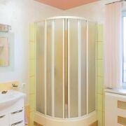 Санузел совмещенный 17 м2, разделен на зоны. Установлено сантехническое оборудование, угловая ванна, умывальник, душевая кабина.