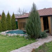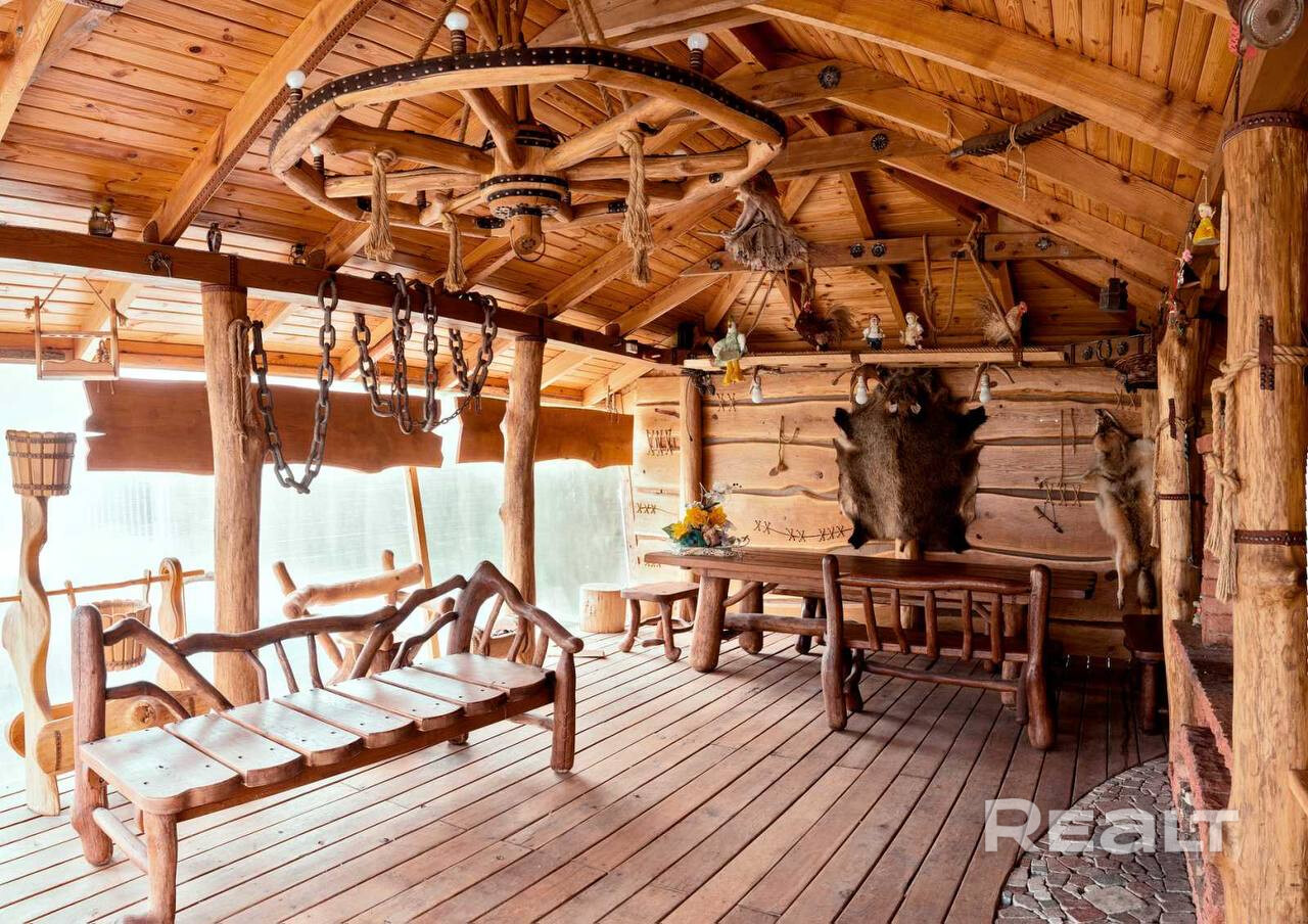 На участке также располагается эксклюзивная беседка из дуба с прекрасной дубовой мебелью и бассейн!