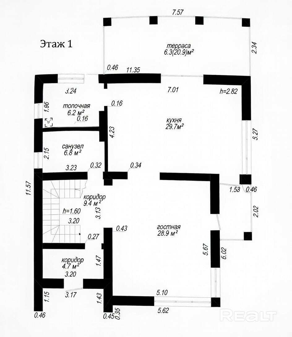 - Просторная кухня со столовой зоной 29,7 м2;